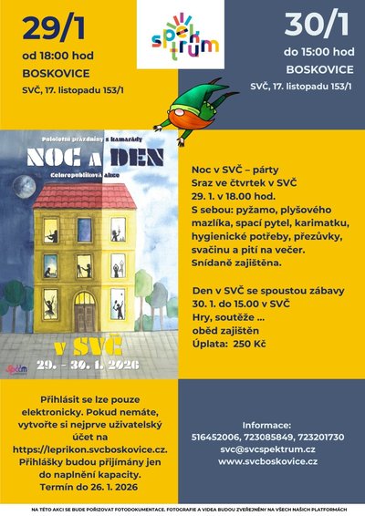 Spektrum – středisko volného času, 17. listopadu 153/1, 680 01 Boskovice | SVČ Spektrum Boskovice 17. listopadu 153/1, 680 01 Boskovice | SVČ Spektrum Letovice Tyršova 1069/25, 679 61 Letovice |